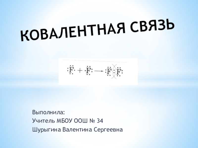 Выполнила:Учитель МБОУ ООШ № 34Шурыгина Валентина СергеевнаКОВАЛЕНТНАЯ СВЯЗЬ