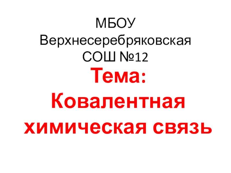 МБОУ Верхнесеребряковская СОШ №12Тема: Ковалентная химическая связь
