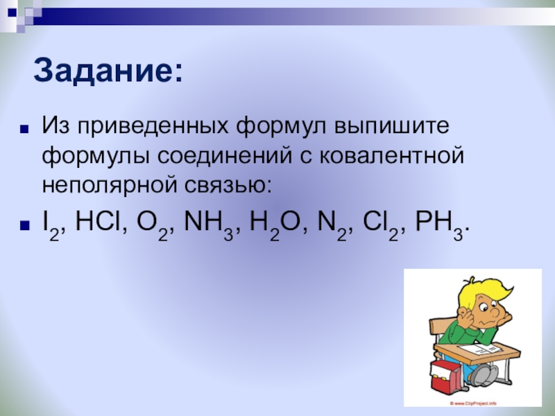 Если ковалентная связь образуется между атомами одного и того же элемента -неметалла, она называется неполярной!