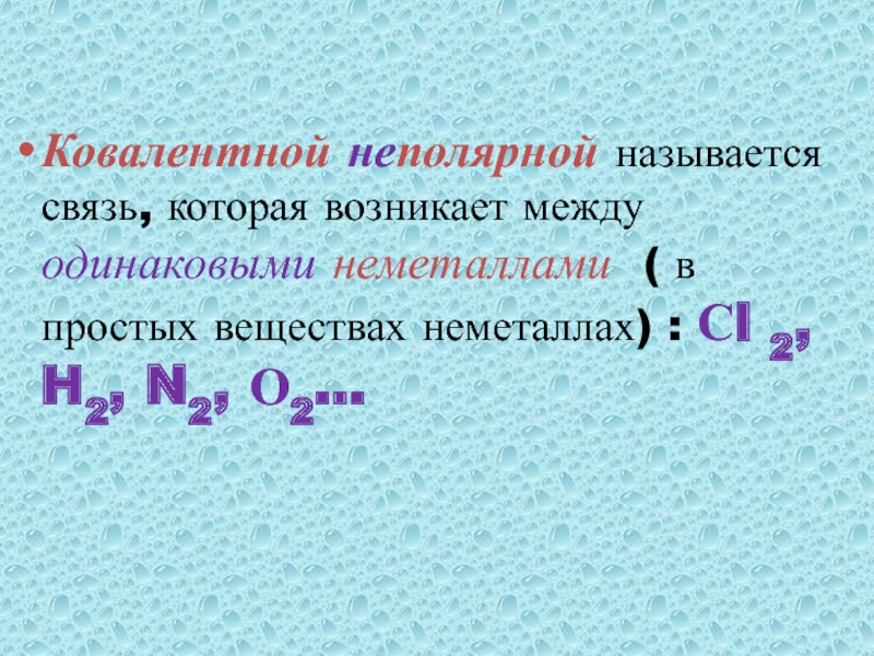 Слайд 17Ковалентной неполярной называется связь, которая возникает между одинаковыми неметаллами ( в