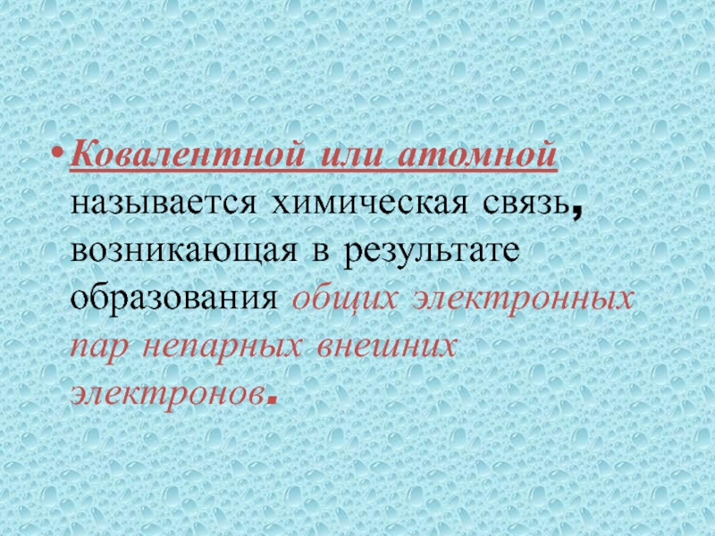 Слайд 11Ковалентной или атомной называется химическая связь, возникающая в результате образования общих