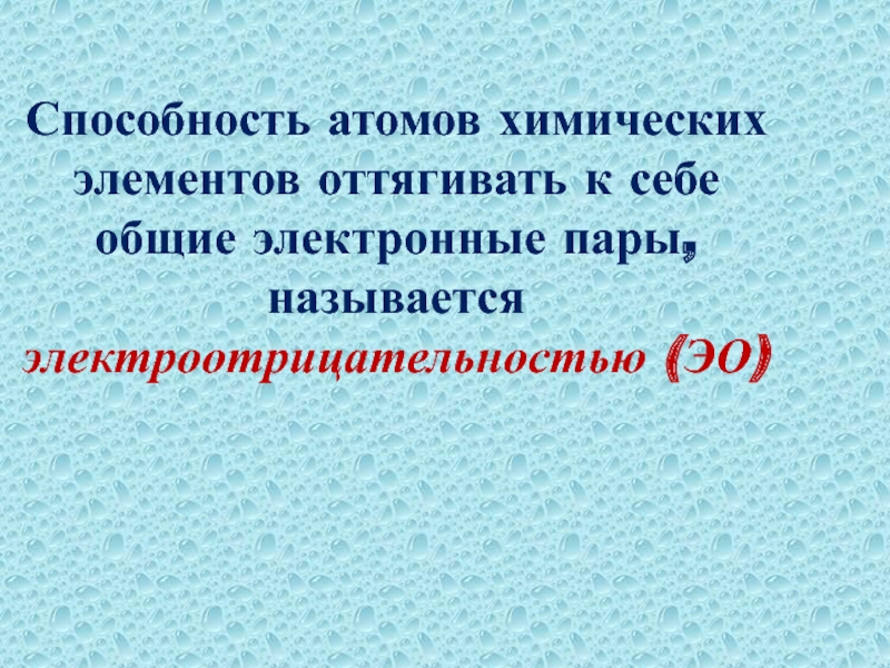 Слайд 25Способность атомов химических элементов оттягивать к себе общие электронные пары, называется