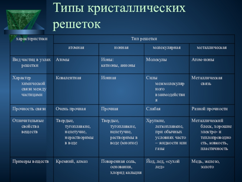 Типы кристаллических решеток