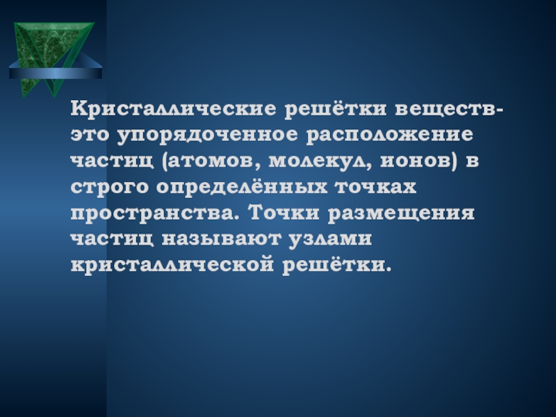 Кристаллические решётки веществ-это упорядоченное расположение частиц (атомов, молекул,