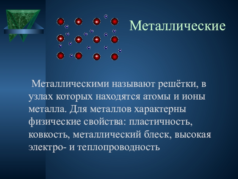Металлическими называют решётки, в узлах которых находятся атомы и ионы металла.