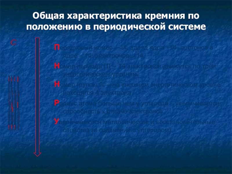 Слайд 3Общая характеристика кремния по положению в периодической системе