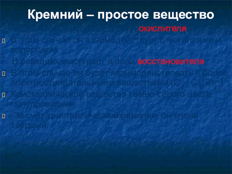 Он химически мало активен, большей активностью обладает аморфный кремний.