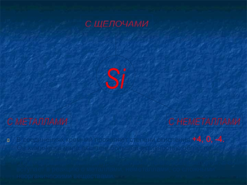 В соединениях кремний проявляет степени окисления +4, 0, -4.