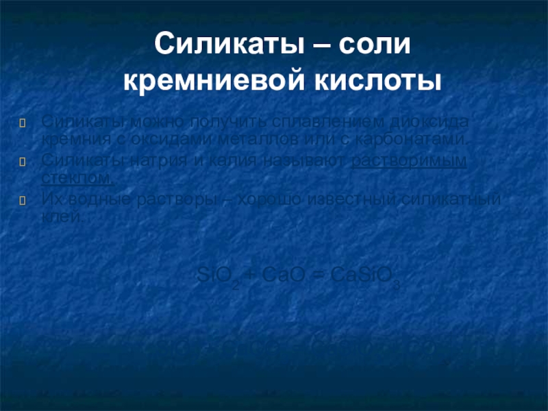 Слайд 7Один из типов природных соединений кремния – силикаты.