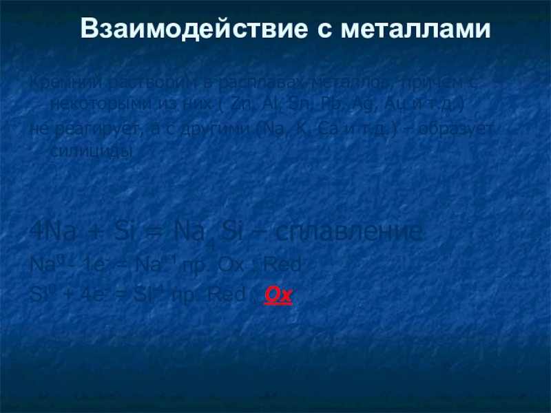 Si0 + 4e- = Si-4 пр. Red ; Ox