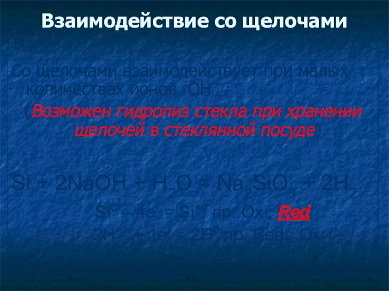 Слайд 17Со щелочами взаимодействует при малых количествах ионов ОН –