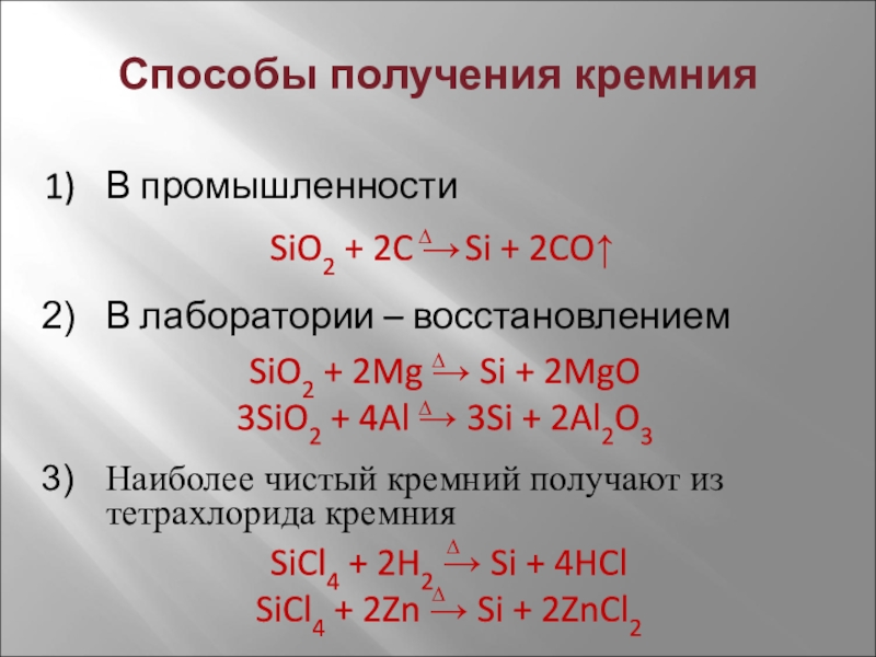 Наиболее чистый кремний получают из тетрахлорида кремния
