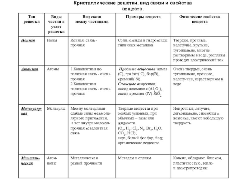 расположение частиц, из которых они построены: атомов, ионов, молекул