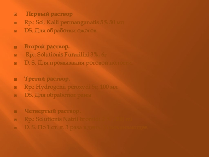 Rp.: Sol. Kalii permanganatis 5% 50 мл