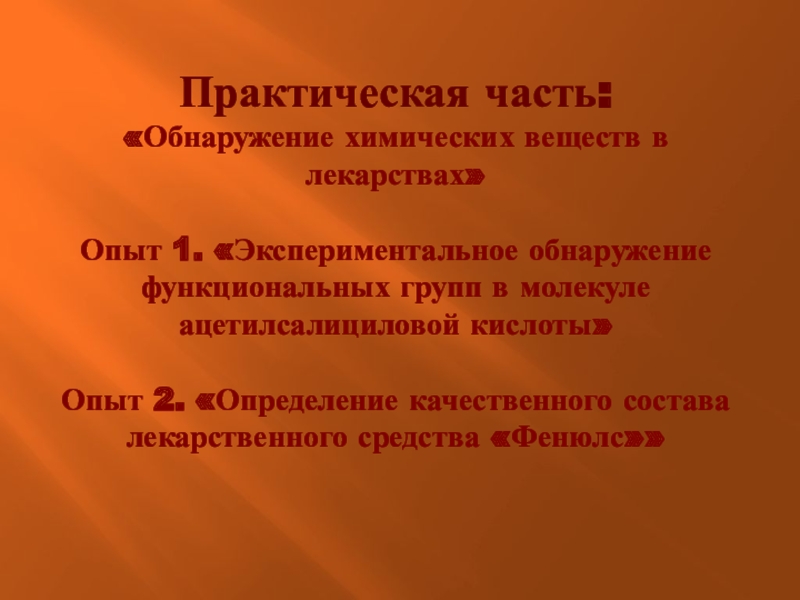 Опыт 2. «Определение качественного состава лекарственного средства «Фенюлс»»