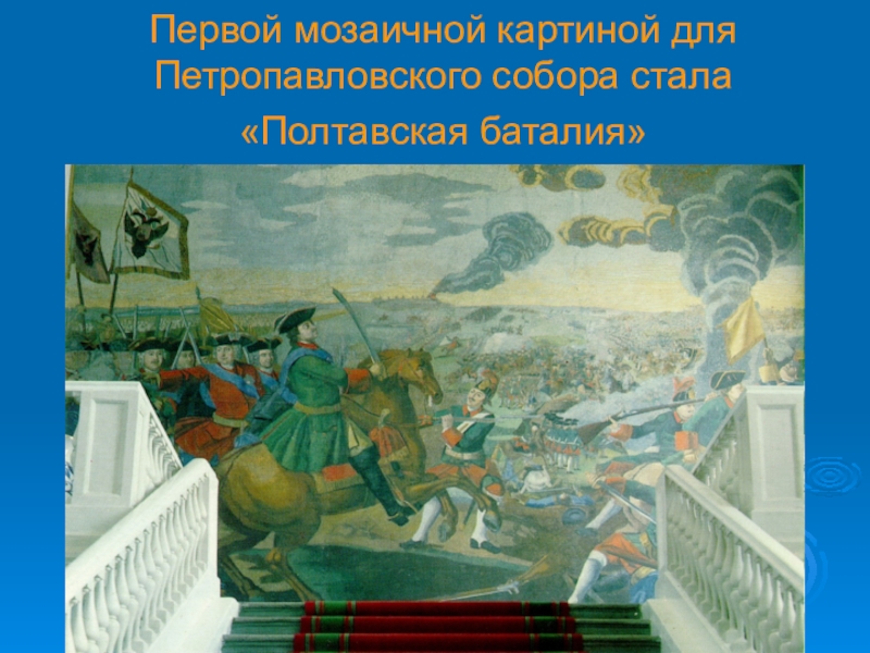 Слайд 18Первой мозаичной картиной для Петропавловского собора стала «Полтавская баталия»