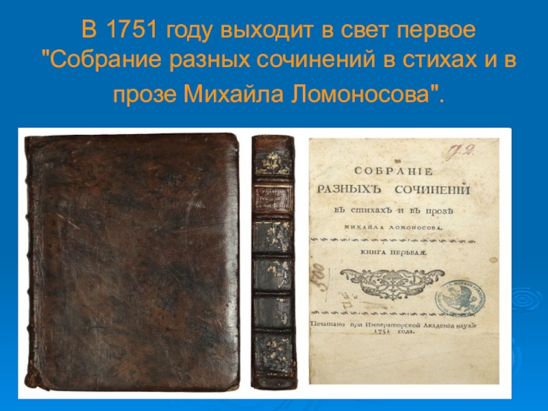 Слайд 24В 1751 году выходит в свет первое "Собрание разных сочинений в