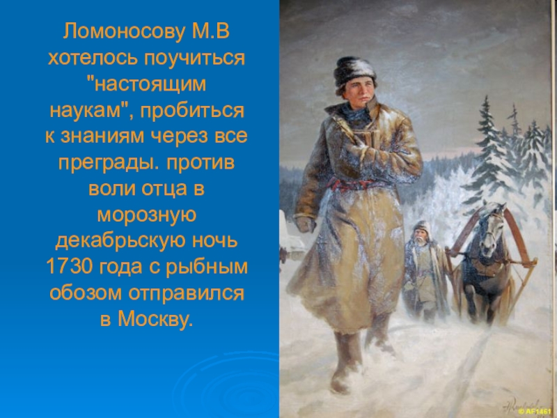 преграды. против воли отца в морозную декабрьскую ночь 1730 года с рыбным обозом отправился в Москву.