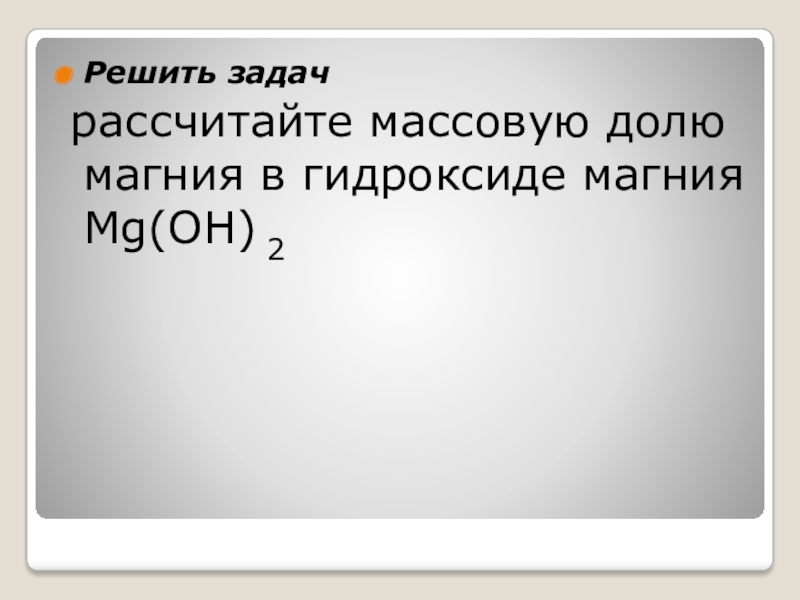 Решить задач рассчитайте массовую долю магния в гидроксиде магния Mg(OH) 2