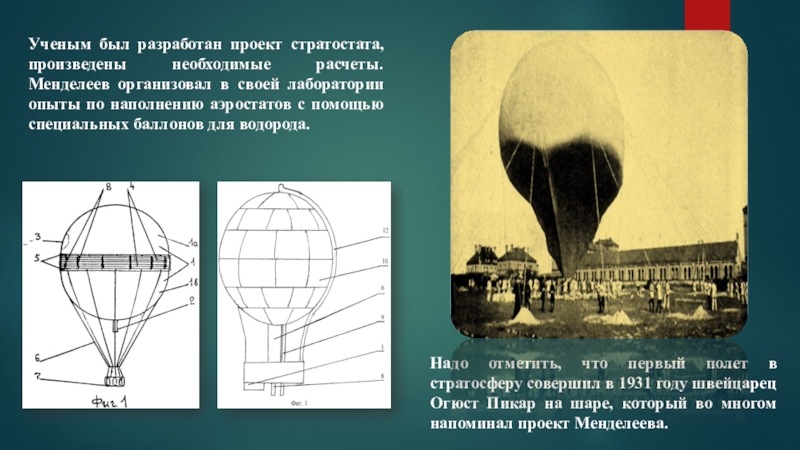 Надо отметить, что первый полет в стратосферу совершил в 1931 году швейцарец Огюст Пикар на шаре, который во многом напоминал проект Менделеева.
