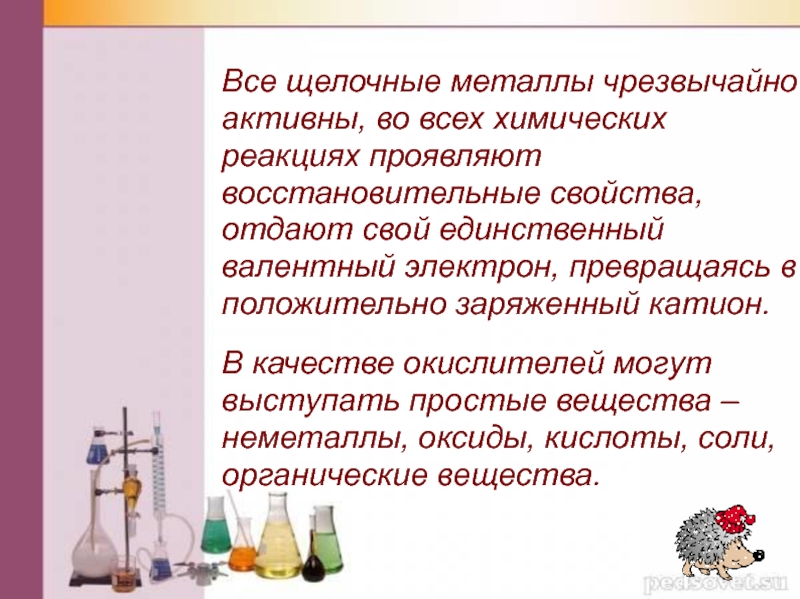 Слайд 11Все щелочные металлы чрезвычайно активны, во всех химических реакциях проявляют восстановительные
