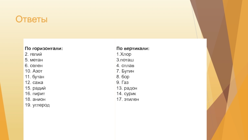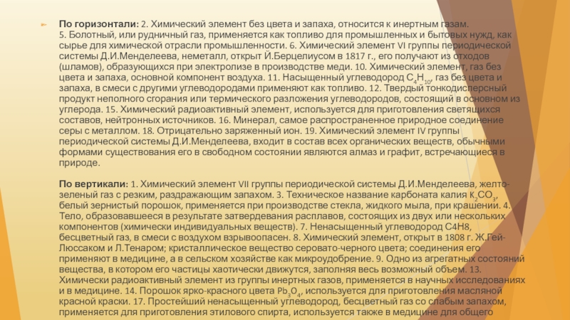 Слайд 12По горизонтали: 2. Химический элемент без цвета и запаха, относится к инертным