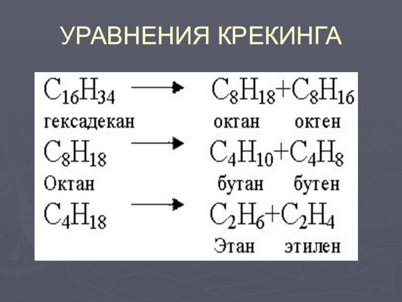 Слайд 13УРАВНЕНИЯ КРЕКИНГА