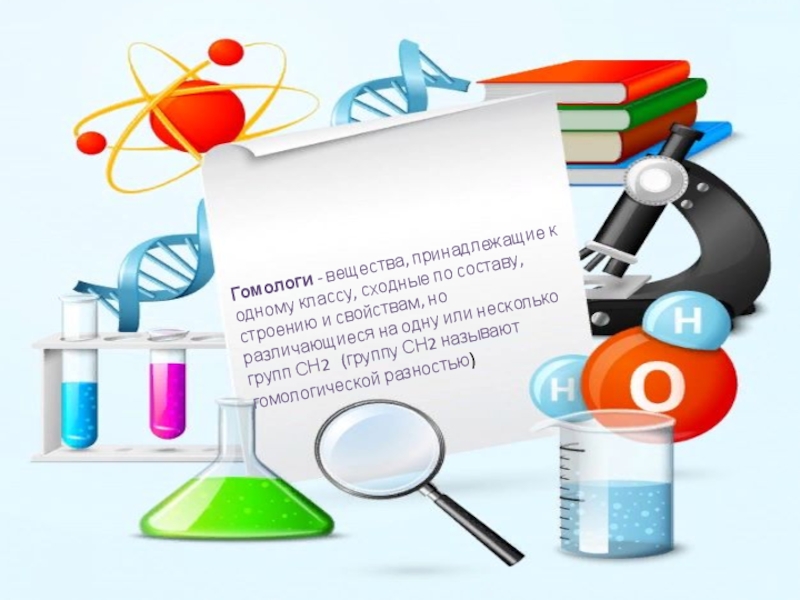 Слайд 5Гомологи - вещества, принадлежащие к одному классу, сходные по составу, строению