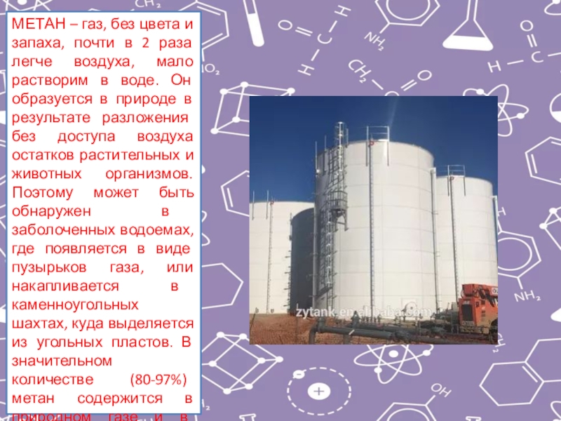 Слайд 9МЕТАН – газ, без цвета и запаха, почти в 2 раза