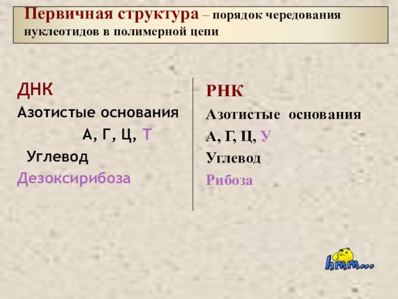 Первичная структура – порядок чередования нуклеотидов в полимерной цепи