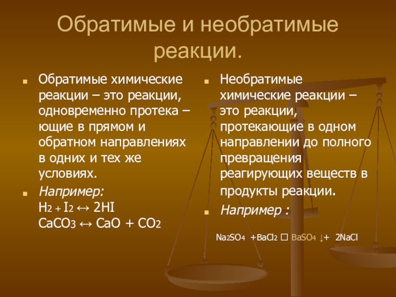 Обратимые и необратимые химические реакции, химическое равновесие,