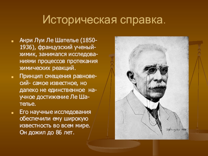 Принцип смещения равнове-сий- самое известное, но далеко не единственное на-учное достижение Ле Ша- телье.