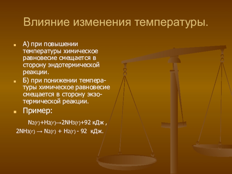 Б) при понижении темпера- туры химическое равновесие смещается в сторону экзо- термической реакции.
