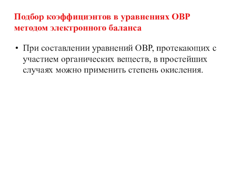 протекающих с участием органических веществ, в простейших случаях можно применить степень окисления.
