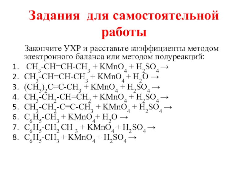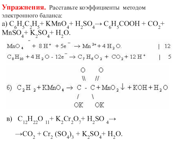 г) С6Н5СН3+ KMnO4+ H2SO 4 → С6Н5СООН + MnSO4+ K2SO4+ H2O.