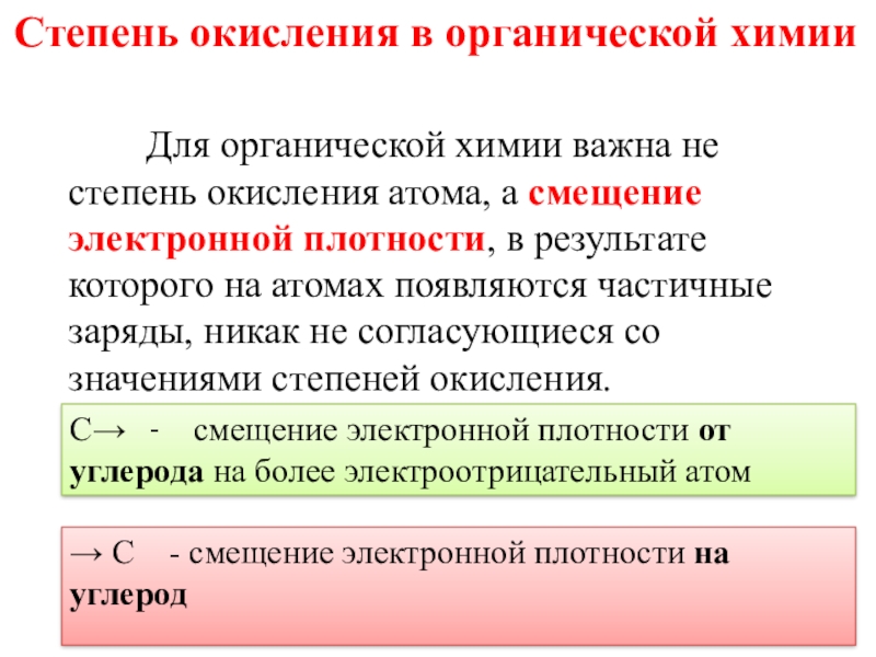 С→ - смещение электронной плотности от углерода на более электроотрицательный атом
