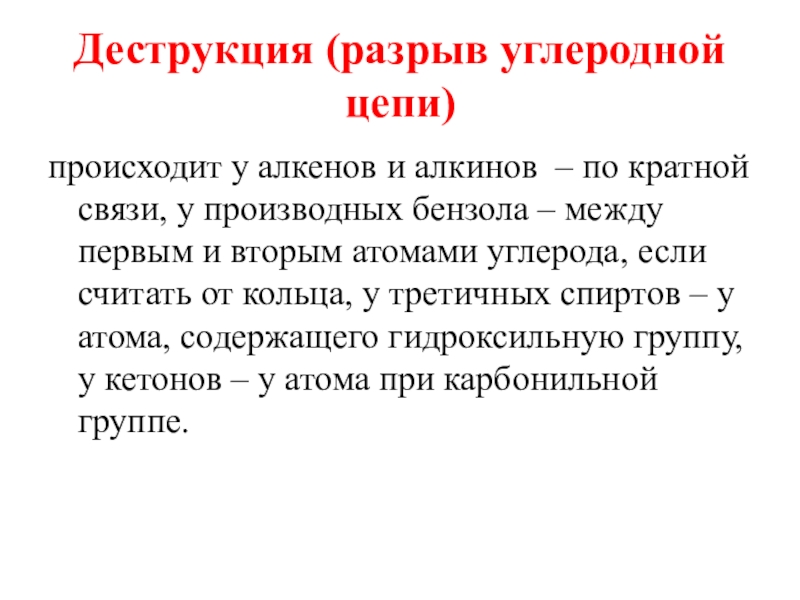 Слайд 19Деструкция (разрыв углеродной цепи)