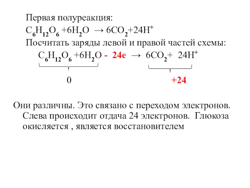 Они различны. Это связано с переходом электронов. Слева происходит отдача 24 электронов. Глюкоза окисляется , является восстановителем