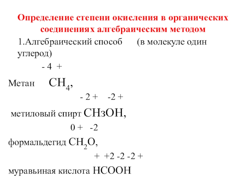 Слайд 9Определение степени окисления в органических соединениях алгебраическим методом