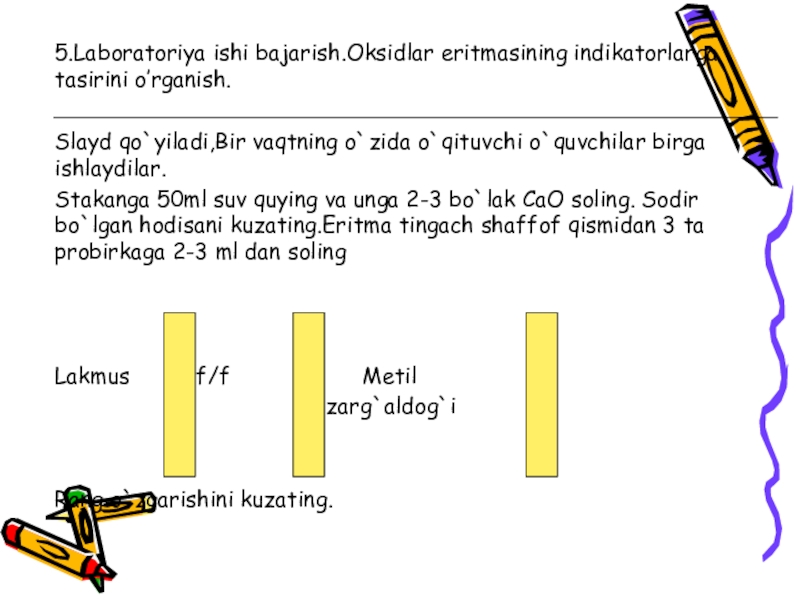 Dars turi:Yangi bilimlarni shakllantiruvchi dars, laboratoriya ishi.
