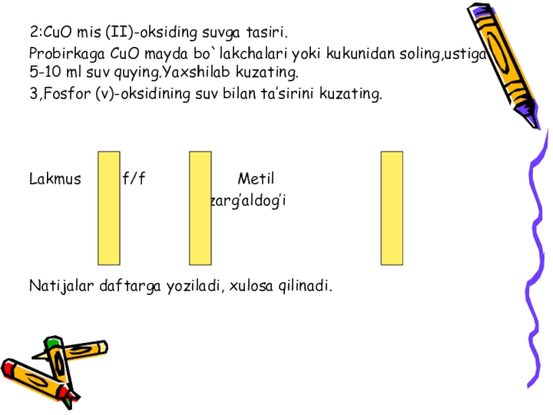 Rivojlantiruvchi maqsad:o’quvchilarda mustaqil ishlash ko’nikmalarini va fikrini erkin bayon qilish, malakalarini rivojlantirish.