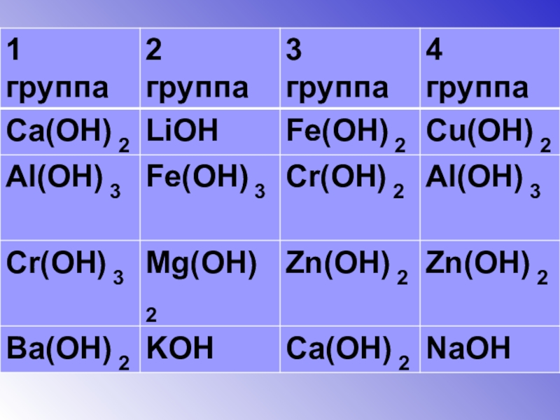 гидроксиды металлов 1 и 2
