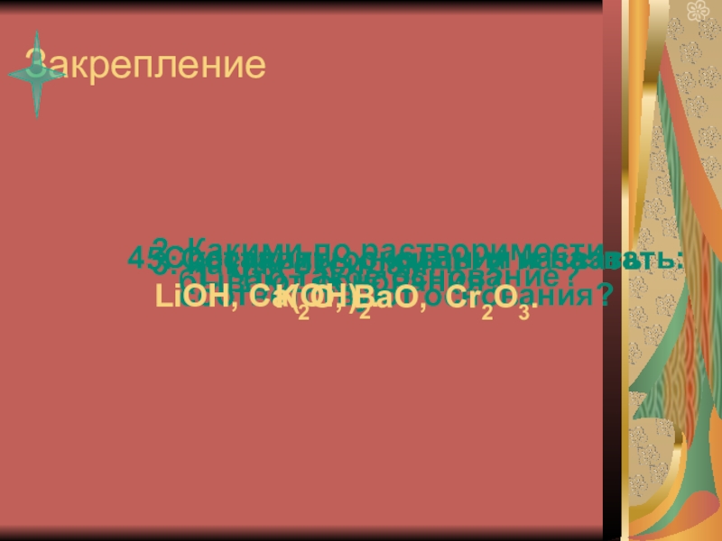 LiOH, Ca(OH)2.