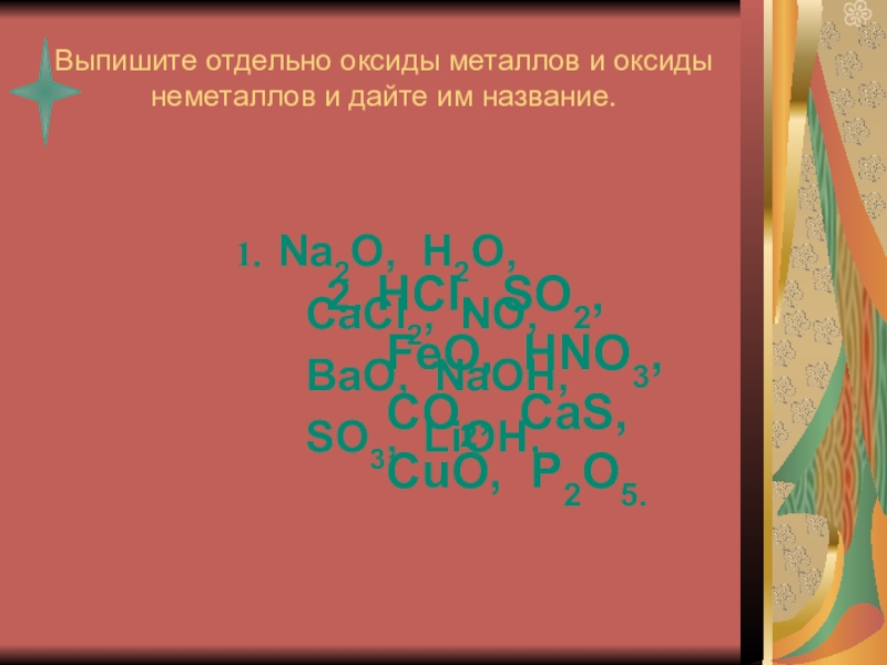 2. HCl, SO2, FeO, HNO3, CO2, CaS, CuO, P2O5.