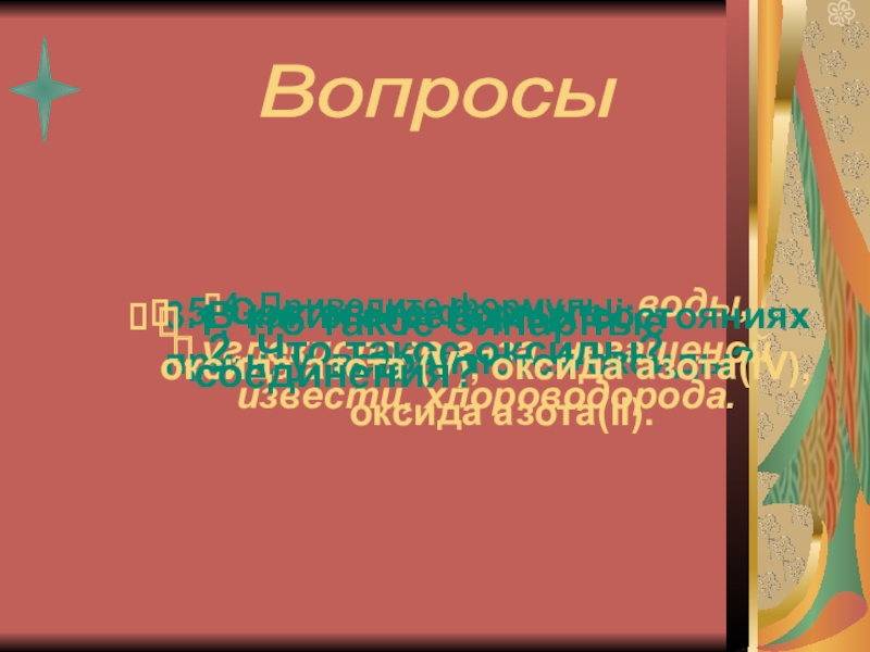 оксида азота (V), оксида азота(IV), оксида азота(II).