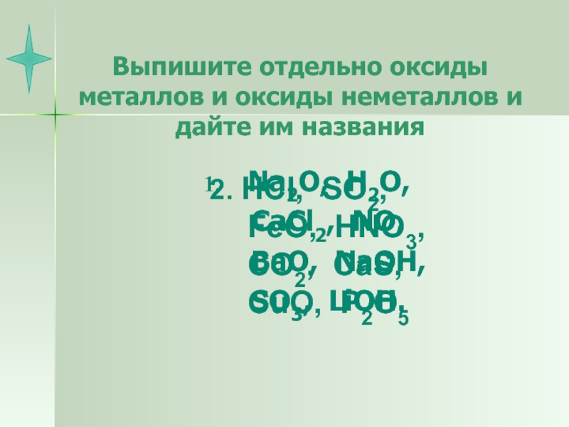 2. HCl, SO2, FeO, HNO3, CO2, CaS, CuO, P2O5