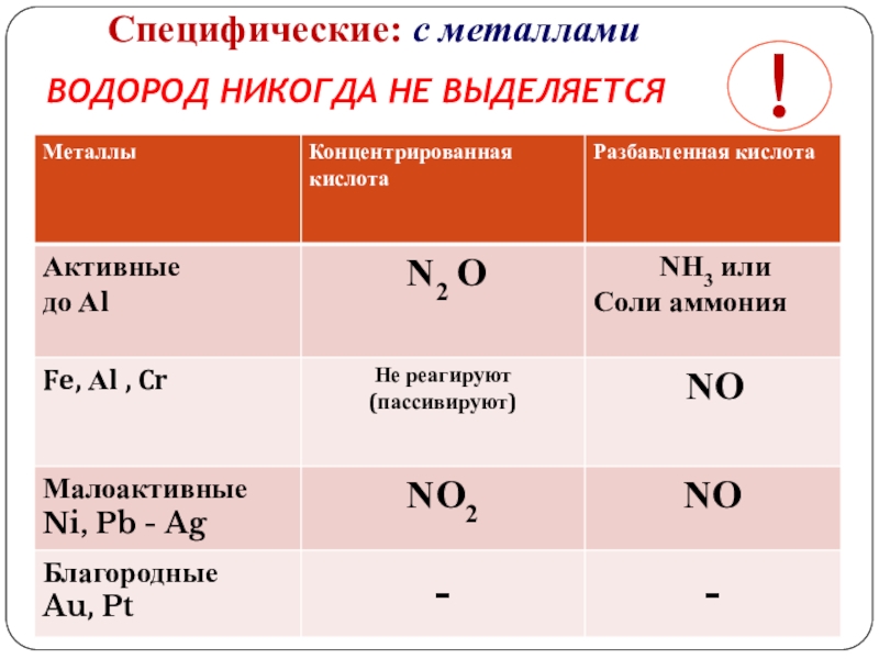 реакция на индикатор, взаимодействие с оксидами металлов,