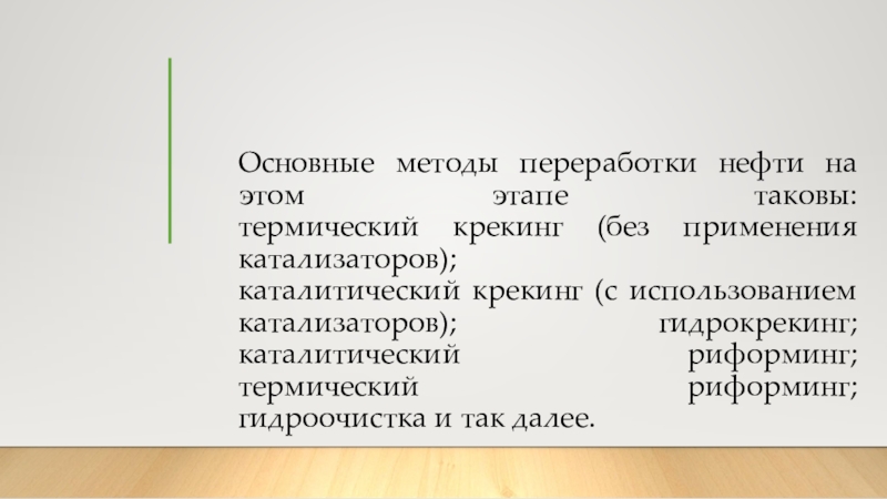 Слайд 3Основные методы переработки нефти на этом этапе таковы: термический крекинг (без применения