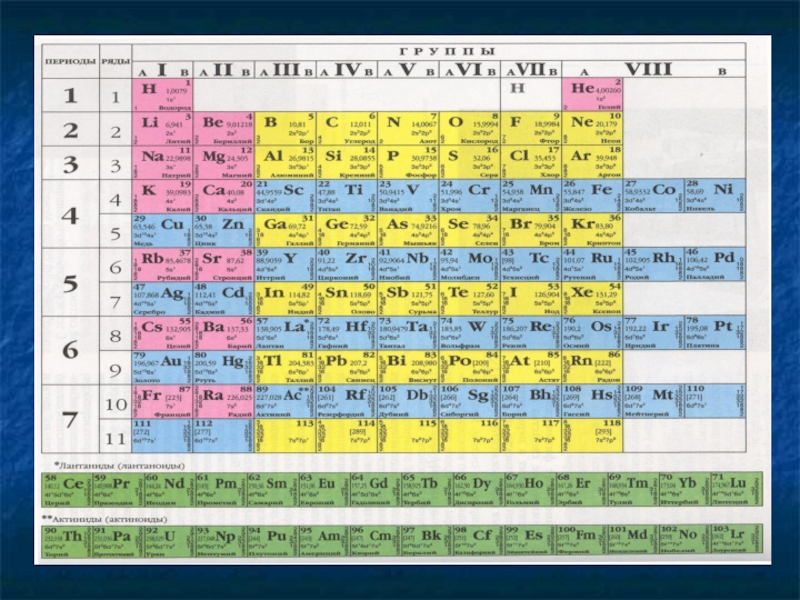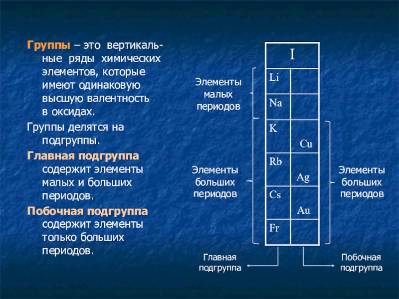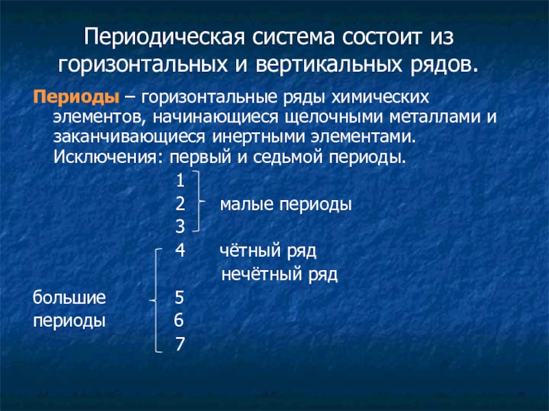 Периодическая система состоит из горизонтальных и вертикальных рядов.