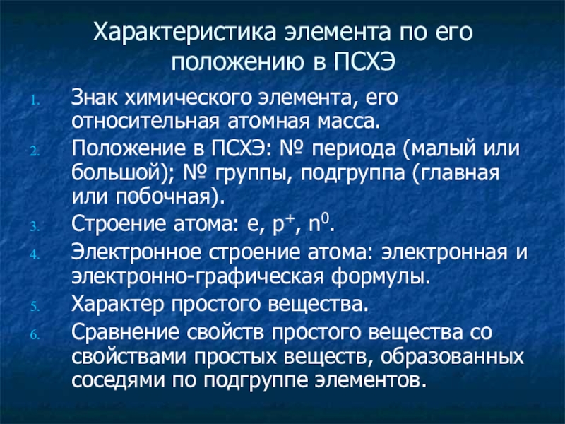 Положительный заряд атома и число электронов равны порядковому номеру элемента в ПСХЭ